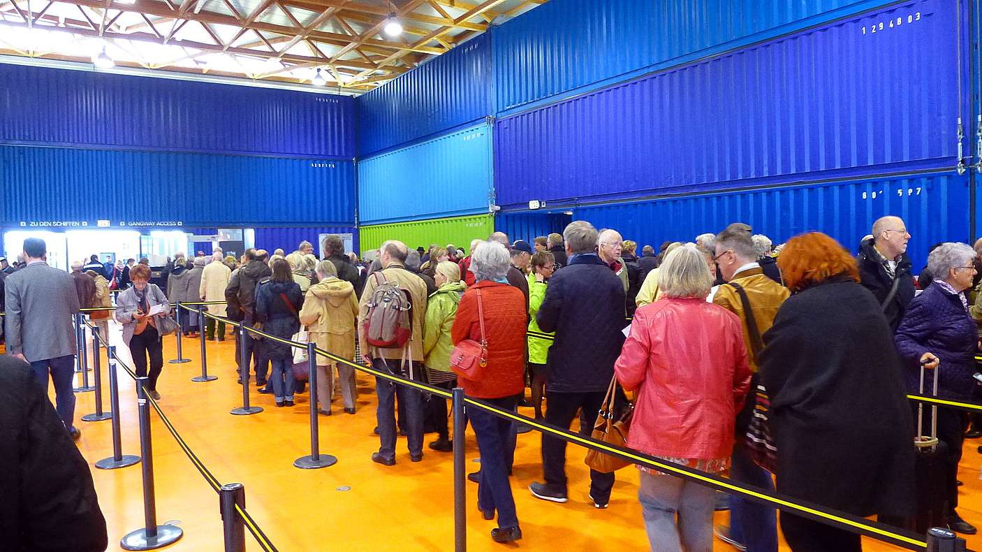 wir fahren mit dem Auto nach Hamburg, gegen 17 Uhr legt die MS Queen Elizabeth ab