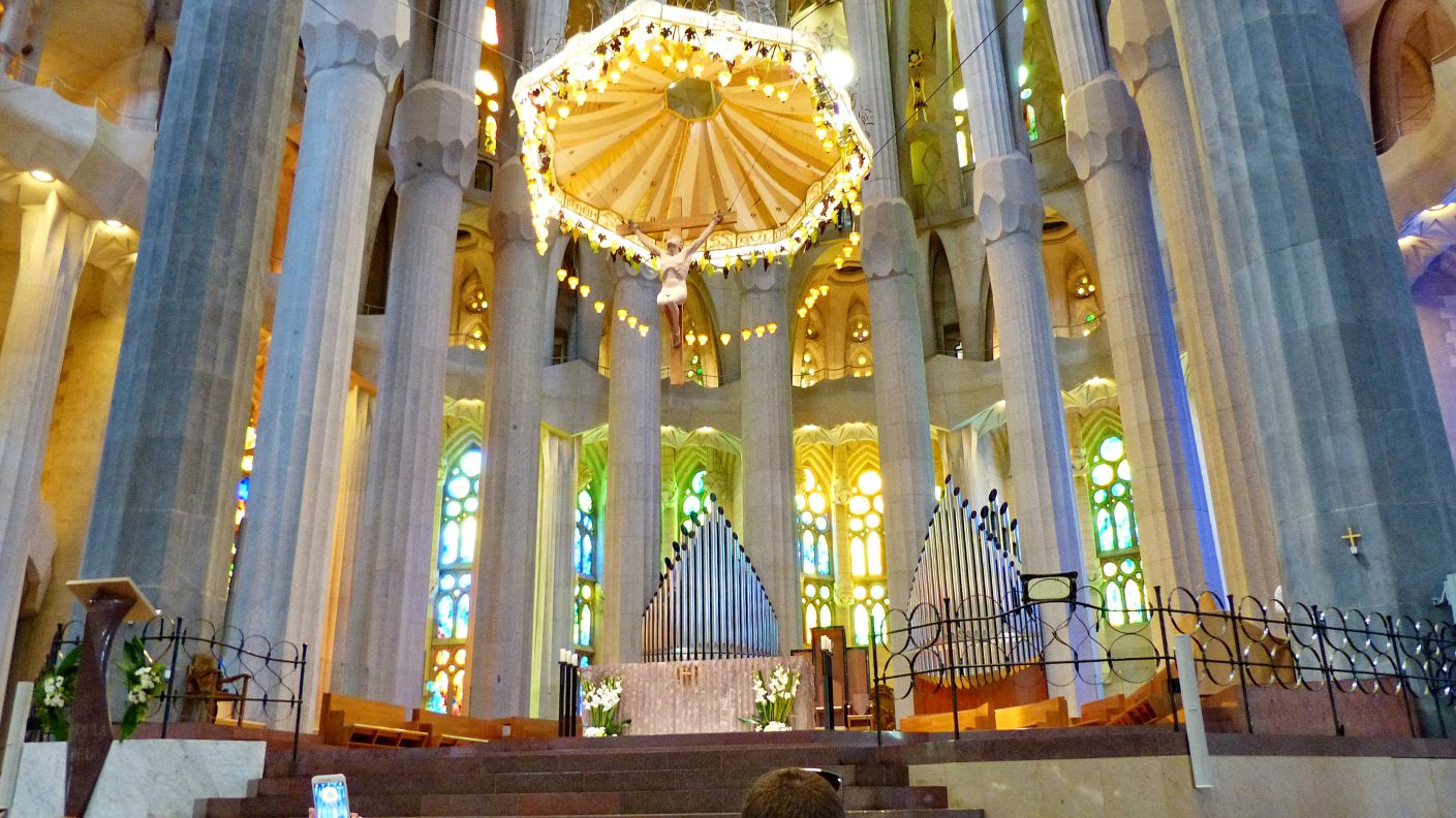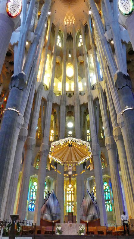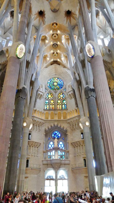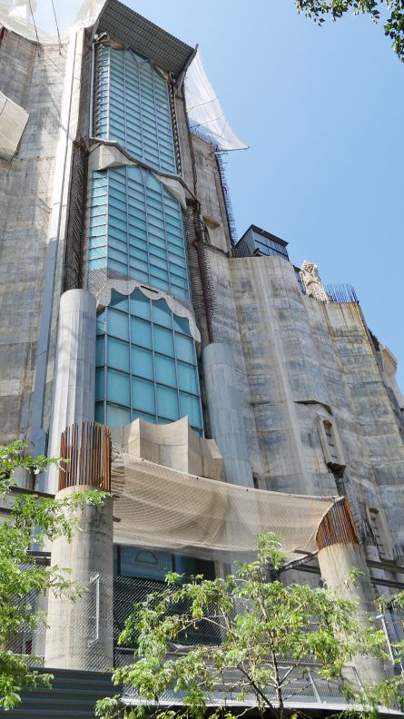 und die Kirche Sagrada Familia mit Auffahrt auf den Turm an der Geburtsfassade