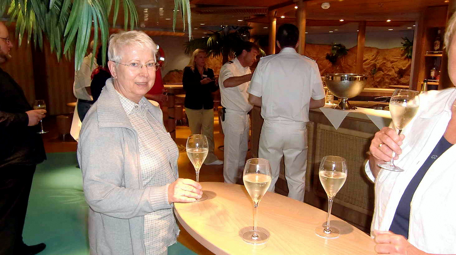 Von hier aus geht es wieder ein Stock höher und plötzlich finden wir uns direkt vor dem Hospital auf Deck 3 wieder. Hier legen wir eine kurze Pause ein. Es werden Sekt und kleine Häppchen, gefertigt im Rossini Restaurant, serviert.