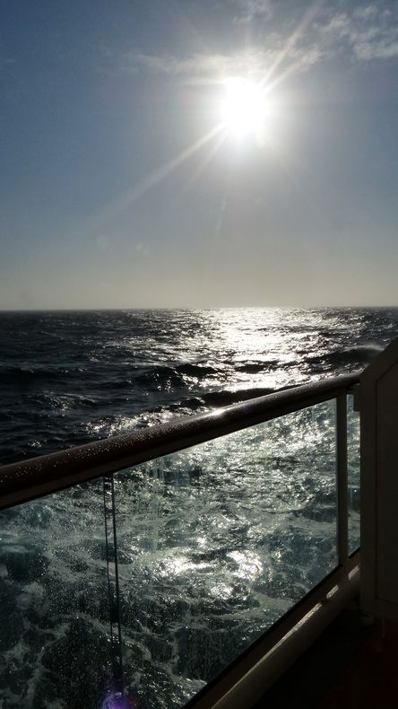 Um 15 Uhr gönnen wir uns im WWR wieder einige Kuchenteilchen. Bei einer heftigen Schiffsbewegung geht dann die erste Milchkanne zu Boden. Das Schiff macht Bewegungen in alle Richtungen, wobei sich alles (aus unserer Sicht) noch in Grenzen hält. Allerdings ist die herrschende Wellenhöhe die höchste, die wir jemals auf einer richtigen Kreuzfahrt hatten. Allerdings erlebten wir auf der Hurtigrutenfahrt auch schon Wellen von bis zu 10 m. Den Nachmittag verbringen wir auf der Kabine. Immer wieder geht der Blick nach draußen, irgendwie sind diese Wellenberge schon faszinierend. Die Höhe der Wellen lässt sich aber fotografisch nicht erfassen.