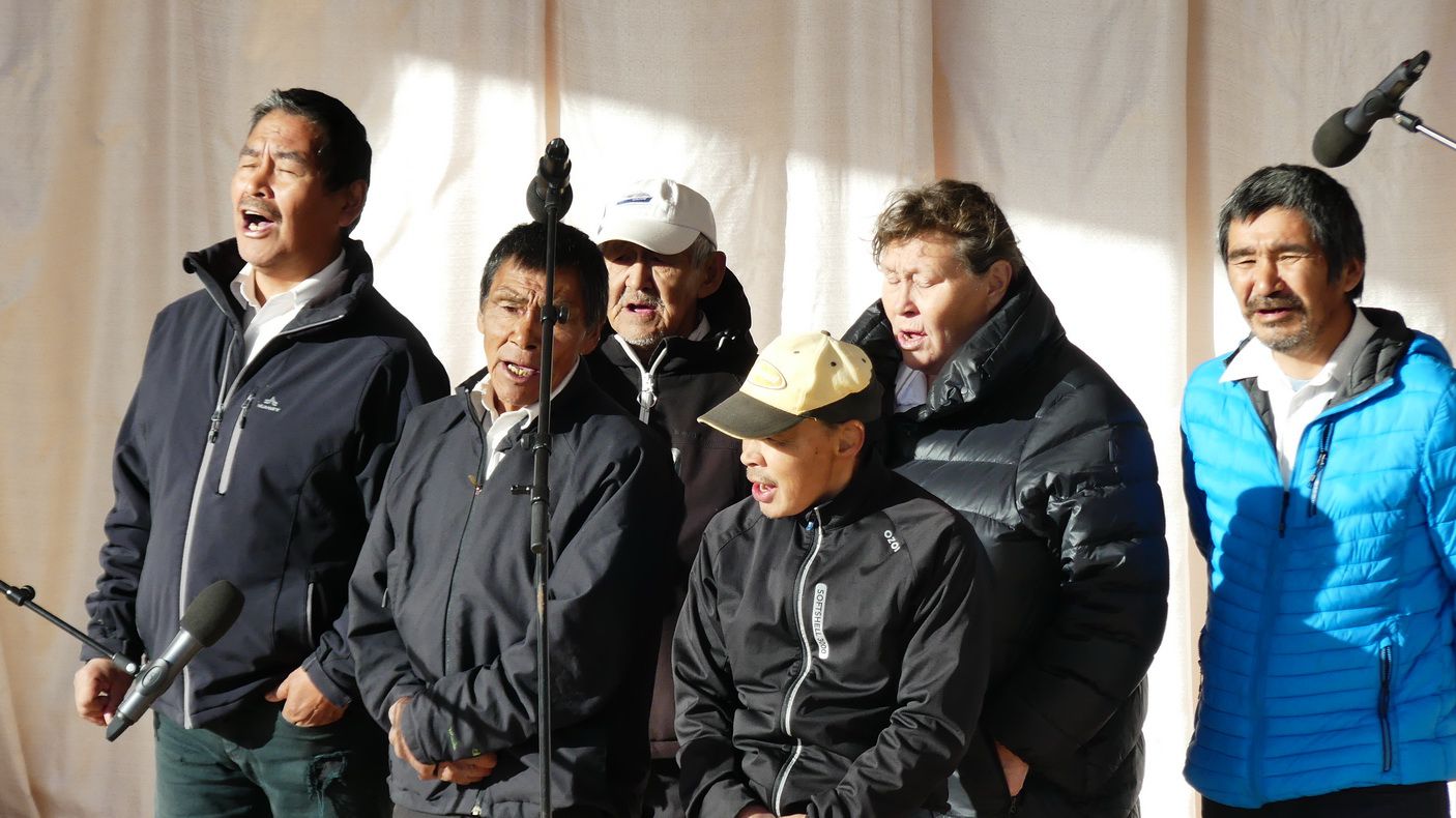 Im Gegenzug kommt eine Folkloregruppe des Ortes mit dem Tenderboot an Bord. Insgesamt ca. 28 Personen, von denen später auf dem Pooldeck nur noch 6 ihre Gesänge vortragen werden. Das Pooldeck ist während dieser Veranstaltung sehr gut gefüllt und die Gruppe erhält viel Applaus für ihre Darbietung. Die Vorstellung dauert etwa 45 Minuten und anschließend wird die Gruppe wieder nach Aappilattoq zurückgebracht.