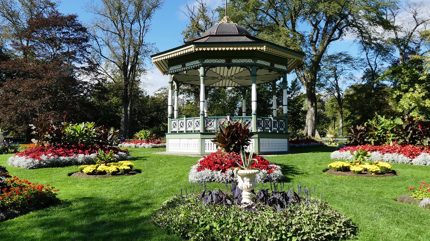 Hier gibt es eine interaktive Karte des Parks. Wir bummeln am Griffins Pound mit dem Titanic Modell vorbei, sehen uns den Victoria Jubiläums Springbrunnen an und erreichen schließlich in der Mitte der Parkanlage den Musikpavillon. Hier finden auch öfters Musikveranstaltungen statt. Nach links über die "Petite Allee" kommen wir die Dahlienschau. Die Dahlien stehen in voller Blüte und sehen wunderschön aus.