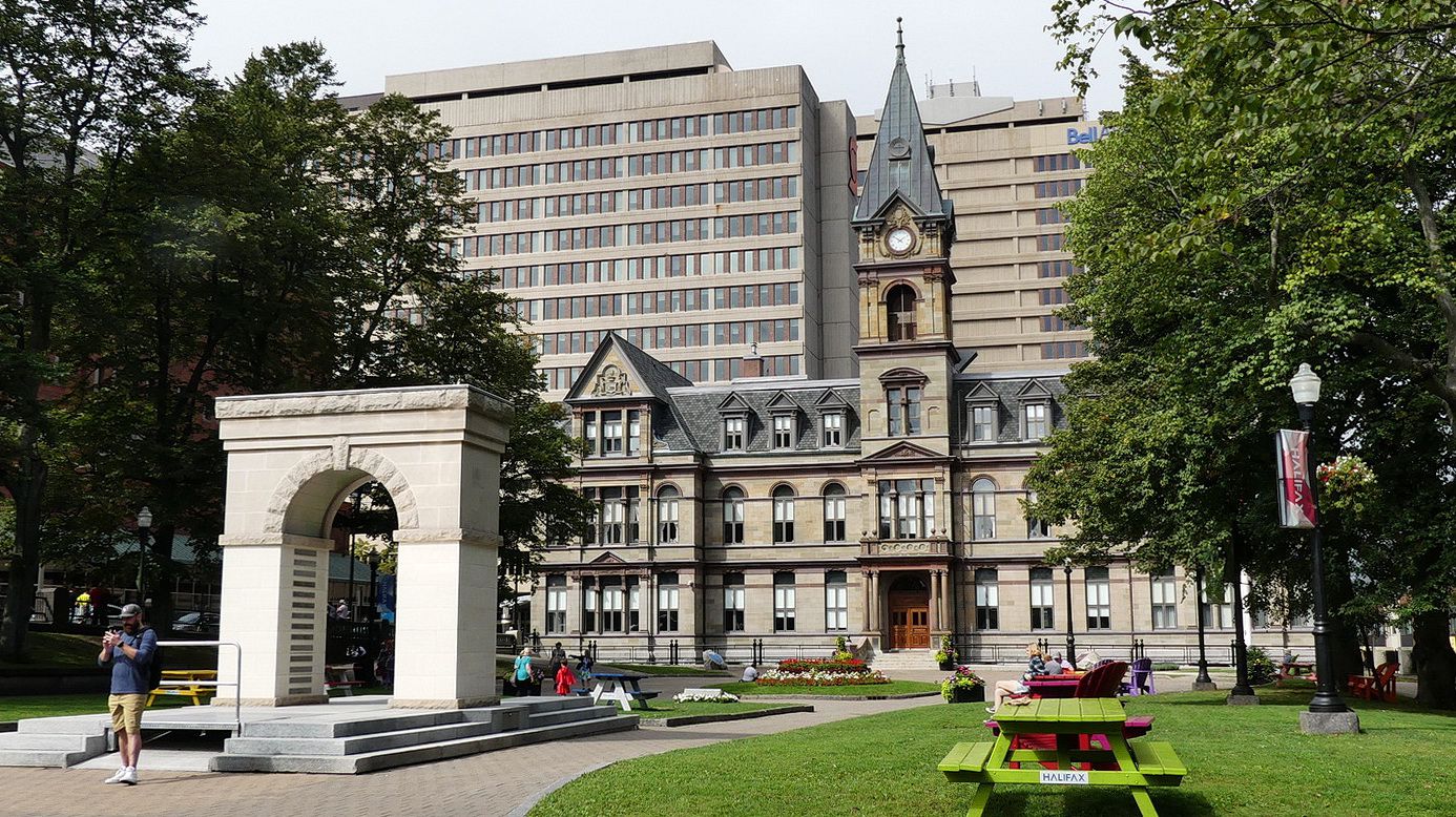 Über die Gerge St. bummeln wir bergauf Richtung Zitadelle. An der Ecke Granville St. stoßen wir auf das Gebäude der ehemaligen Canadian Bank of Commerce (erbaut 1906) mit schönen Granitsäulen im Eingangsbereich. Schon von hier aus können wir den historischen Uhrenturm am Fuß des Hügels der Zitadelle sehen. Nur eine Querstraße weiter erreichen wir die Grand Parade, einen historischen Militärparadeplatz aus der Gründungszeit von Halifax um 1749.