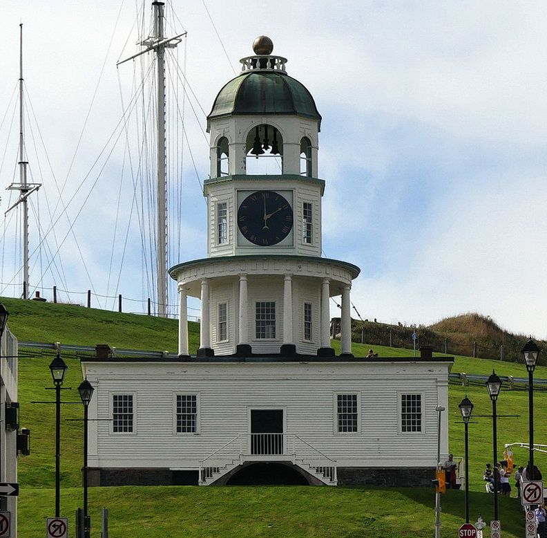Wir klettern ein Stück den Hügel hoch und lassen uns auf einer Bank nieder. Von hier aus kann man den Uhrenturm gut sehen und haben auch einen schönen Blick auf Halifax. Zitat Wikipedia zum Zweck des Turms: das am 20. Oktober 1803 eröffnete Bauwerk geht auf eine Idee von Edward August, dem Grafen von Kent und Strathearn, zurück. Angeblich wollte er damit die Unpünktlichkeit der örtlichen Garnison eindämmen. Sie sollten von überall die Zeit erkennen können.