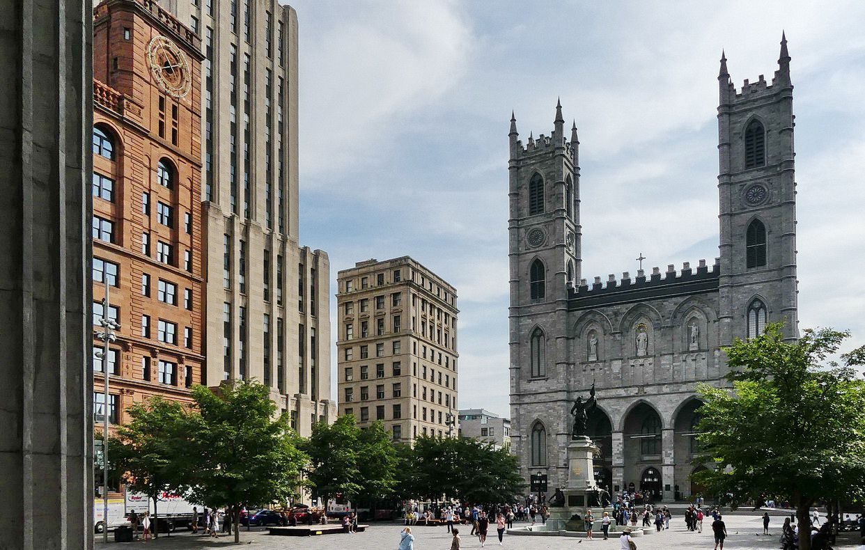 Am Ende der Straße erreichen wir die Basilique Notre-Dame, die an der Nordostseite des Place d'Armes steht. Wir wundern uns über die lange Schlange von Leuten, die vor der Kirche anstehen und das bei 12CAN$ Eintritt. Aber wenn man Bilder der Kirche von innen sieht, kann man das schon verstehen. Wir wollen aber nicht so lange warten und bummeln weiter über den Place d'Armes. Rund um den Platz, den es schon seit 1693 gibt, stehen Gebäude verschiedener Epochen.
