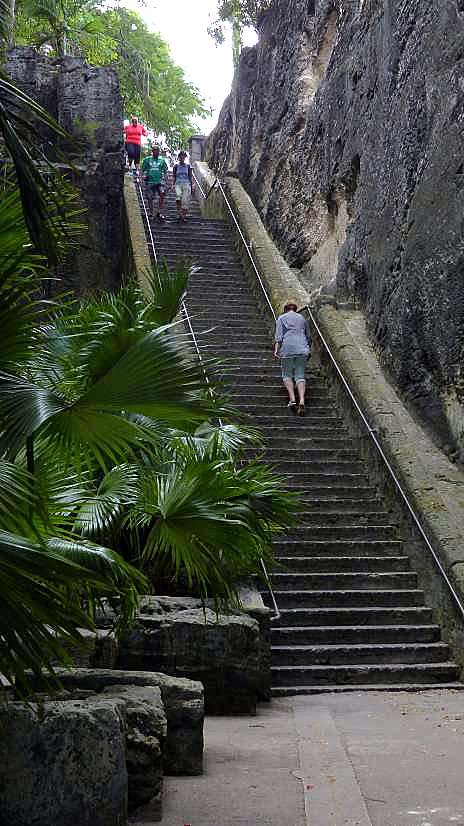 Unser Spaziergang beginnt am Rawson Platz, dem Zentrum der Stadt. Vorbei am Churchill-Gebäude und über den Parliament Square sehen wir einige der ältesten Häuser Nassaus aus dem 17. und 18. Jahrhundert. Es macht Spaß einfach so durch die Stadt zu bummeln. Vorbei an der 1797 als Gefängnis erbauten Bibliothek (Umbau 1873) erreichen wir die Queens Stairs. Der Zugang liegt am Ende der Elizabeth Avenue .schöner Aussichtspunkt