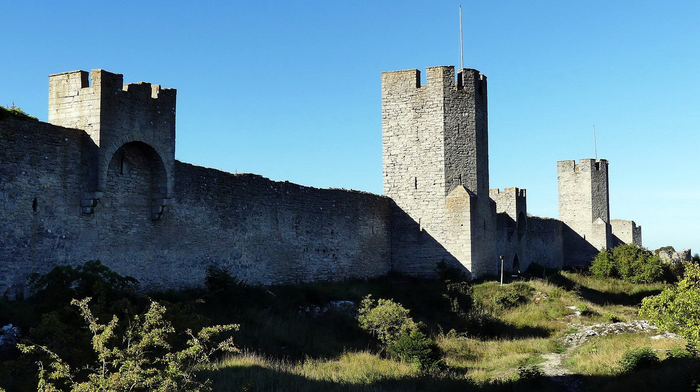 Während der Rückfahrt nach Visby erzählt uns Gunnar, wie schon während der gesamten Fahrt, vieles über die Geschichte Gotlands und viele andere Sachen. Kurz vor 16 Uhr sind wir zurück in Visby. Vom oberen Ende der Altstadt aus, nahe dem Dalmanstornet ( einem der Stadttore in der Stadtmauer von 1784), werfen wir zunächst einen Blick auf die gewaltige Stadtbefestigung. Visbys. Mit Beginn des 13.Jhdts. wurde die ersten Teile der Mauer erricht und bis zum 18. Jhdt. immer weiter ausgebaut. Eine mächtige und beeindruckende Verteidigungsanlage mit Gräben und Wehrtürmen.