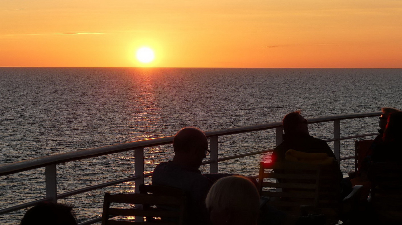 Heute früh können wir zum ersten Mal nicht ausschlafen, unser erster Landausflug steht auf dem Programm. Als wir gegen 7 Uhr aus dem Bett klettern, können wir an Steuerbord schon die Insel Gotland erkennen. Die Sonne strahlt erneut vom blauen Himmel. Wir machen uns fertig und frühstücken etwas zügiger wie sonst. Aber trotzdem nutzen wir auch heute wieder das Außendeck, noch sind die Temperaturen in Ordnung.