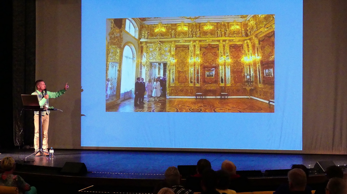 Um 13 Uhr hält Ralf Eden aus Berlin seinen 2. Vortrag, diesmal ist St. Petersburg an der Reihe. Das Theater ist wieder gut gefüllt. Wie fast immer überzieht der Lektor seine vorgegebene Zeit, aber der Vortrag war wieder sehr gut und lustig vorgetragen.