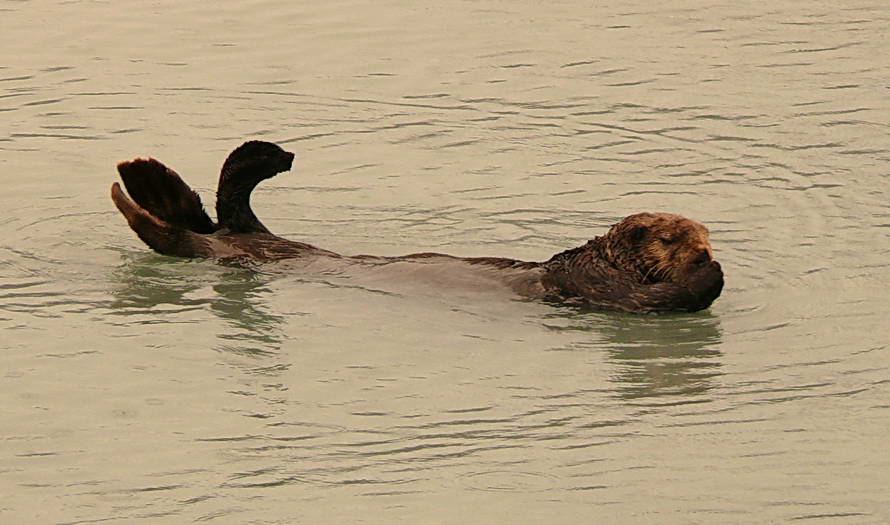 Wir verlassen den "Small Boat Harbour" um kurz darauf schon wieder zu stoppen. Ein Seeotter treibt rücklings am Boot vorbei und alle wollen dieses possierliche Tierchen natürlich fotografieren. Sehr toll für meinen Videofilm taucht der Otter kurz darauf ab. Gegen 11 Uhr 30 wird der Lunch (im Reisepreis eingeschlossen) allen Passagieren serviert. Es gibt einen kalten Hühnchen-Wrap und als Beilage Mini-Möhrchen und einen süßen Riegel. Nicht schlecht, aber auch nicht überragend.