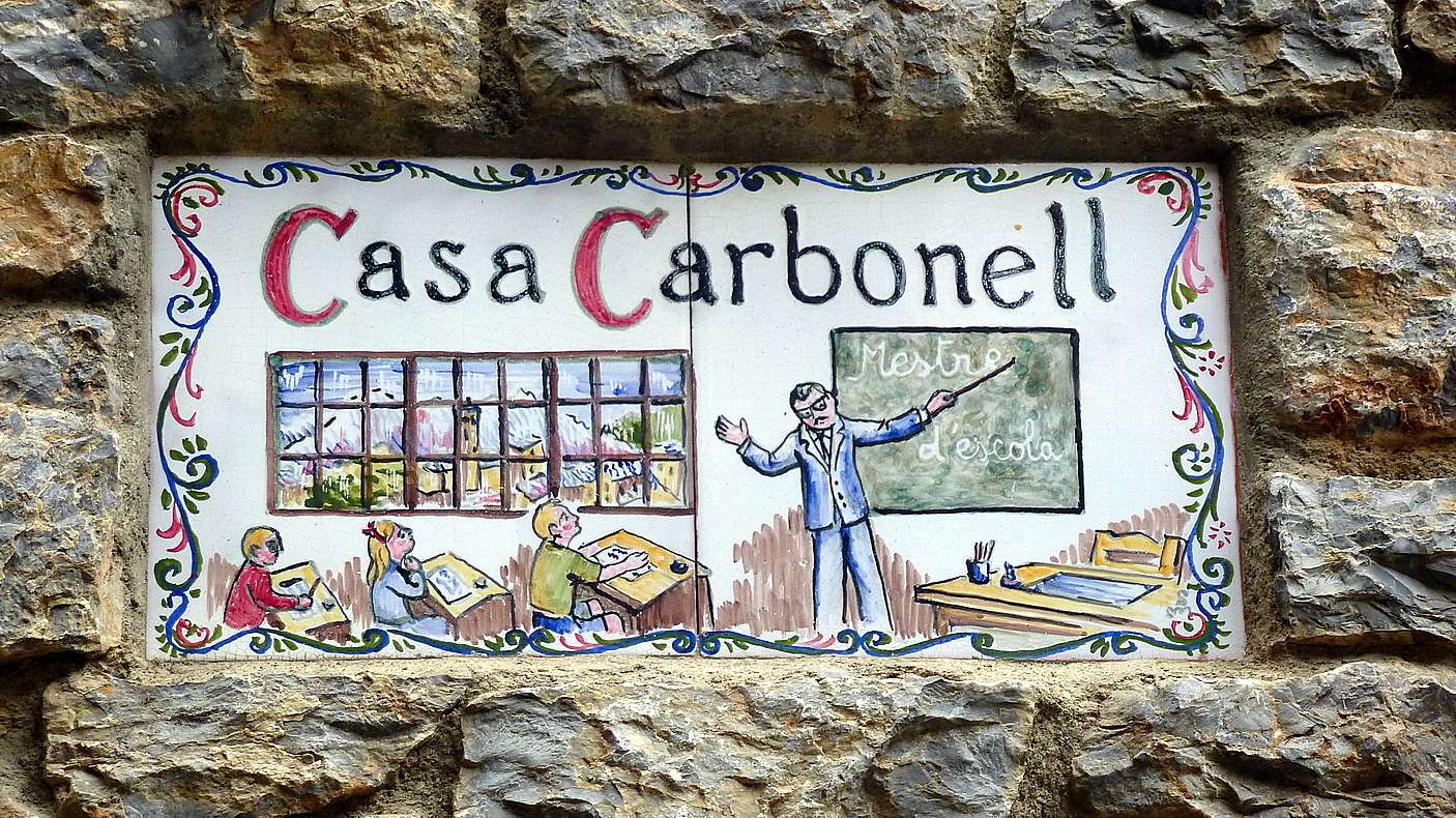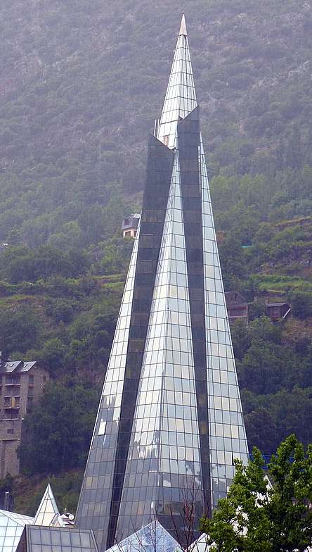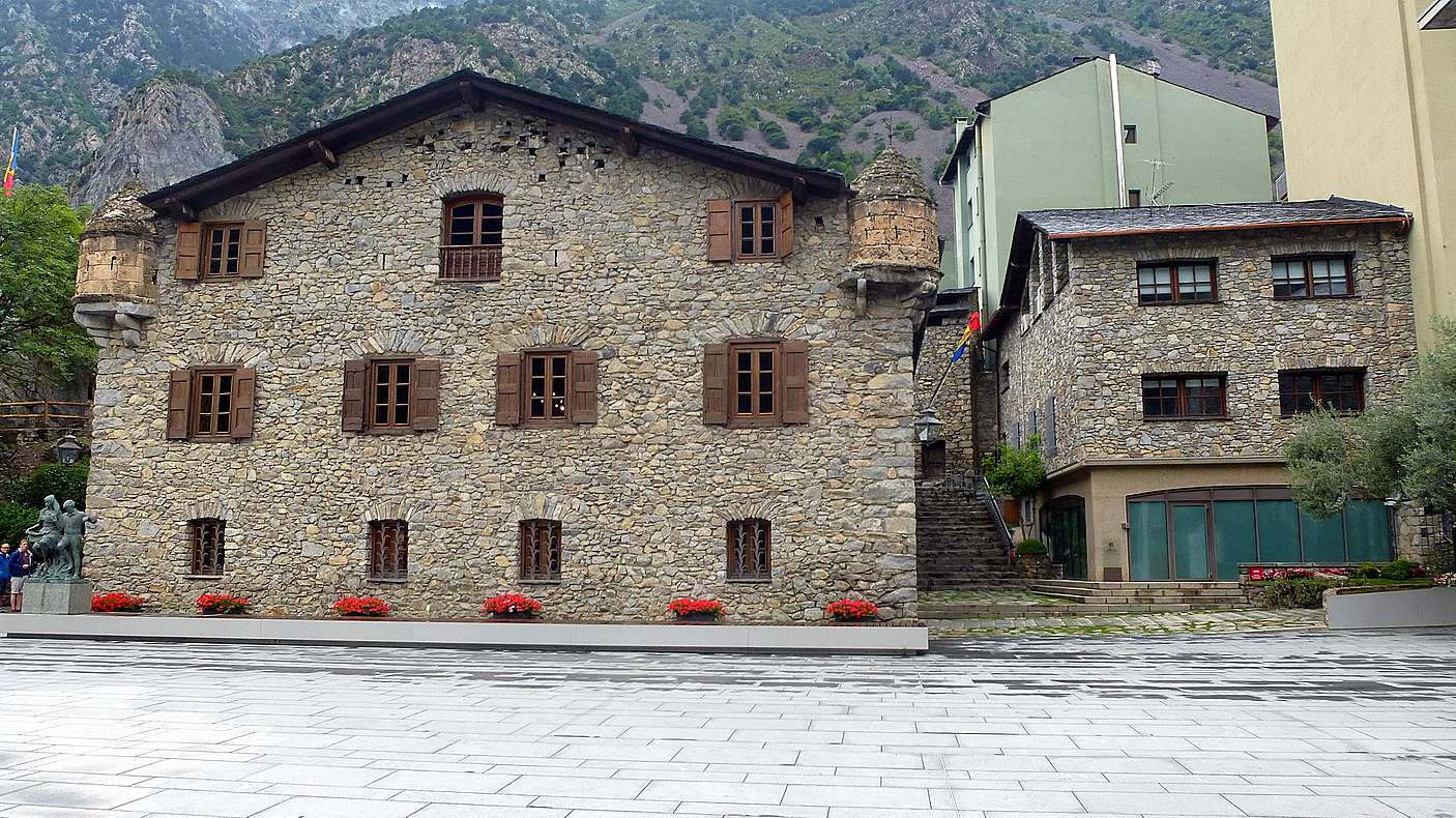 Direkt neben der Kirche steht noch ein Kunstwerk aus Metall, das einem überdimensionalen Stuhl ähnlich. Wie wir später erfahren, wurde es von dem Künstler Fernando de Blasi erschaffen. Von ihm stammt auch die Metallskulptur "Àngel del trapezi", die wir in der Carrer de La Vall sehen. Auf diesem Weg gehen wir weiter zum Casa de La Vall. Casa de la Vall ist der ehemaligen Sitz des andorranischen Parlaments, den wir morgen im Rahmen unseres Ausflugsprogramms noch mal besuchen werden. Ein neues, represäntatives Parlamentsgebäude wurde inzwischen direkt gegenüber erbaut. In den kleinen Straßen der Altstadt entdecken wir noch interessante Schilder, die auf die ehemalige Funktion des Hauses (wie z.b. Schule oder Schmied) hinweisen. Heute sind wir nur zu Viert und haben Zeit uns alles in Ruhe anzusehen und zu fotografieren. Von der großen Terrasse vor dem Parlament hat man einen schönen Blick über Andorra La Vella. Anschließend kehren wir wieder um und laufen auf der Av. Meritxell / Av. Carlemany zurück in Richtung Zentrum.Pause in der Caféteria „Fleca Font“ und Rückkehr nach Canillo