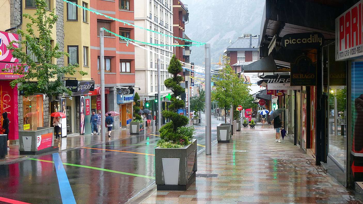 Wir verlassen den Bus an der Kreuzung Carrer del Prat Gran/Carrer de la Constitució und bummeln hinüber zur Haupteinkaufsstraße, der Av. Carlemany. Leider fallen schon wieder einige Regentropfen, aber später hört der Regen zum Glück ganz auf und auch die angekündigten Gewitter entwickeln sich nicht. Wir bummeln die Einkaufsstraße entlang und sind über die Vielzahl der Geschäfte erstaunt. Viele bekannten Marken, ob Bekleidung, Schmuck o.ä. sind hier zu finden. Outdoorläden, Elektronikgeschäfte, kleine Shopping-Malls und Kaufhäusern ergänzen die Einkaufsmöglichkeiten.