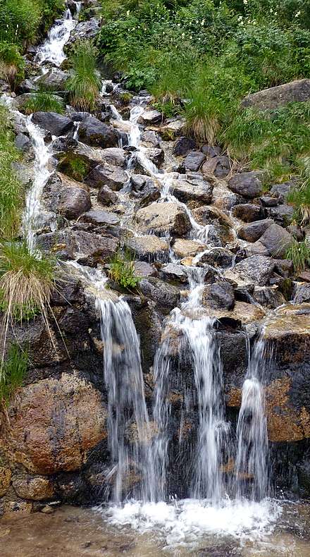 Immer am Berg entlang geht es weiter zu einigen sehr schönen Aussichtspunkten auf den Ort Encamp. Unterwegs passieren wir den Montuell Fluss und den La Molina Fluss, die hier mehrere kleinere Wasserfälle bilden.die ersten Regentropfen fallen