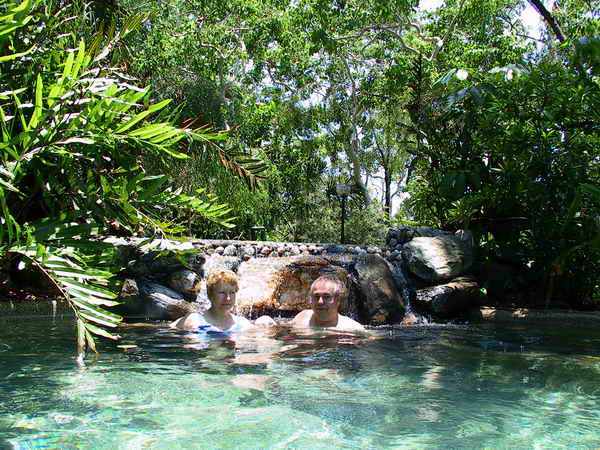 Abends als wir im Restaurant des Hotels gerade etwas essen wollten, setzte sich plötzlich ein Kukabarra, ein doch recht großer Vogel auf das Geländer, ca. 2 m von uns entfernt. Wir waren völlig überrascht und total erfreut so etwas zu sehen. Da wir zu diesem Zeitpunkt die einzigen Gäste waren, verhielten wir uns völlig ruhig um diesen Anblick zu genießen.