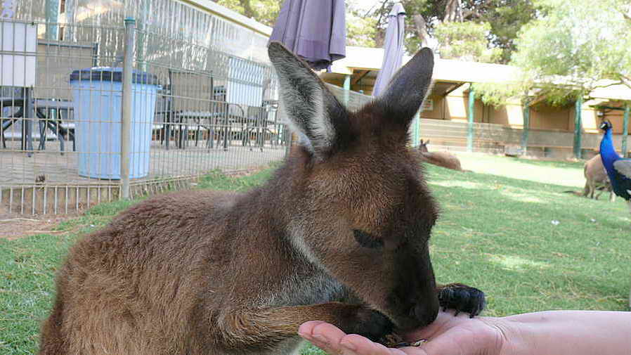 Auf der Glen Forrest Animal Farm wollen wir einen Zwischenstopp einlegen. Hier soll es Tiere zum knuddeln geben. Unser Navi, der angeblich die Farm als Touristenattraktion kennt, leitet uns etwas in die Irre. Wir folgen daher einem Wegweiser der Farm, der direkt an der Straße steht. Allerdings ohne Streckenangabe, man fährt nämlich noch rund 20 Km über Schotterpisten bis man die Farm erreicht. Ich finde, der Abstecher lohnt sich nicht unbedingt, es sei den man hat kleine Kinder dabei. Der Eintritt beträgt 10 AU$ pro Person, eine Futtertüte für die Tiere kostet 2 AU$.