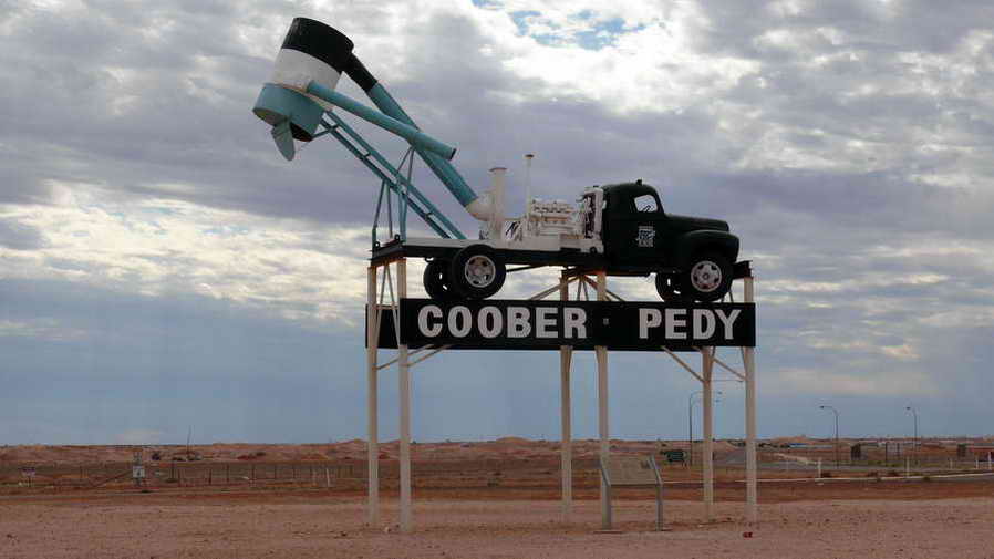 So langsam fragen wir uns, wo denn hier eine Stadt liegen soll. 10 Km vor Coober Pedy ist noch immer nichts vom Ort zu sehen. Doch dann tauchen die ersten Erdhügel der vielen Opalschürfer auf, jetzt kann es nicht mehr weit sein.