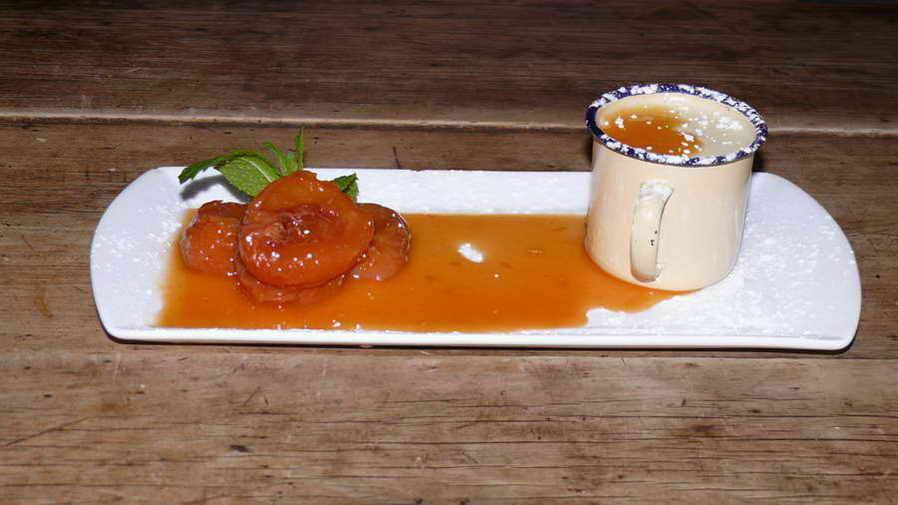 Aber halt, noch nicht ganz. Die Pizza war nicht allzu groß und so bestelle ich mir noch "Lemon Aspen panna Cotta", getrocknete Nektarinen mit "Lemon myrtle compote". Keine Ahnung was das ist, hört sich aber gut an. Die Nektarinen werden dann in einer süßen Sauce serviert, dazu ein kleiner "Blechhenkeltopf" gefüllt mit einem italienischen Frischkäse mit Zitronengeschmack. Ein sehr schmackhafte süß-saure Kombination, mir hat es jedenfalls sehr gut geschmeckt. Zum Abschluss bestellen wir uns noch 2 Gläser eines leckeren Rotweins und verziehen uns dann auf unser gemütliches Zimmer.
