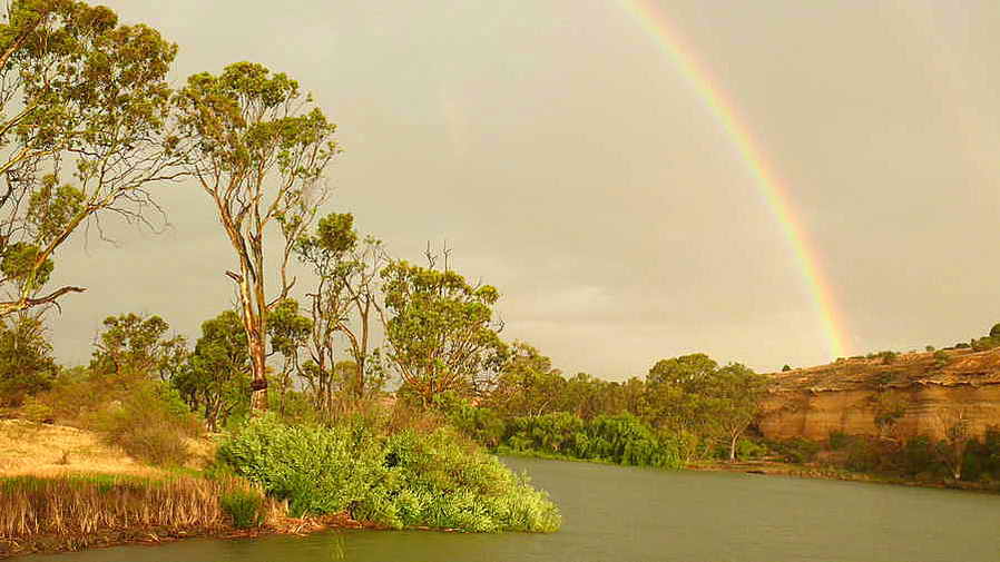 Gegen 15 Uhr 20 sind die letzten Passagiere an Bord und wir legen ab. In gemütlicher Fahrt mit 8 km/h fahren wir den Murray flussaufwärts. Der Fluss ist hier relativ breit und an den Ufern liegen viele Hausboote. Die Sonne scheint und wir genießen die Fahrt. Anette erklärt uns immer sehr viel, da die anderen alles schon kennen. Die Landschaft verändert sich ständig und auch steile Uferwände (Cliffs) kommen immer wieder ins Blickfeld. Leider verdunkelt sich der Himmel und es beginnt zu regnen. So sitzen wir im Salon auf dem Oberdeck, trinken Kaffee und genießen einige Kekse. Später serviert uns Peter noch einige Häppchen, die ausgesprochen gut schmecken. Eine sehr entspannte Atmosphäre. Erste Gespräche werden geführt und man beschnuppert sich, bzw. uns, denn alle anderen kennen sich ja schon.