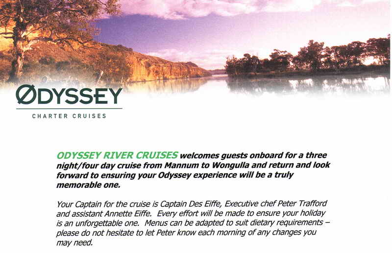 Allerdings sitzt uns die Zeit etwas im Nacken, den wir müssen um 14 Uhr 30 spätestens in Mannum sein. Dort beginnt unsere 4-tägige Kreuzfahrt auf dem Murray River. Durch eine wunderschöne hügelige Landschaft mit viel Weinanbau fahren wir Richtung Mannum. Dass die Gegend hier so bergig ist, hatte ich nicht erwartet. Daher benötigen wir mehr Zeit als geplant, aber wir sind ja auch rechtzeitig losgefahren. Unser neues Auto fährt sich ausgesprochen gut, ein 16-Zylinder. Die Landschaft durch die wir fahren begeistert uns beide, aber leider haben wir nicht genug Zeit hier länger zu verweilen. Gegen 14 Uhr 30, wie vereinbart, erreichen wir Mannum. Dank guter Vorbereitung und des Navis finden wir Odyssey River Cruise auf Anhieb.