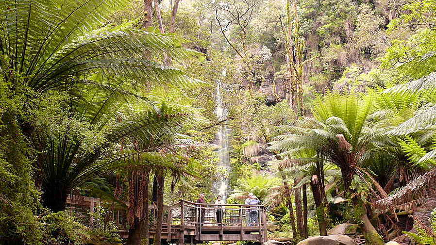 Mitten in Lorne folgen wir dem Hinweis auf die Erskin Fals. Über die William Street und die Lorne Erskin Falls Road auf die Erskin Falls Road. Vom Parkplatz aus sind es etwa 80 m bis zum oberen Lookout auf den schönen Wasserfall.
