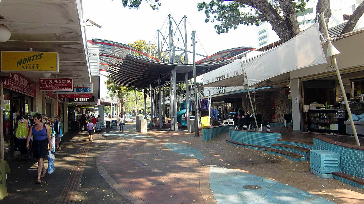 Anschließend laufen wir zurück in die City und die Shopping Mall. Nach einem kurzen Einkauf von Getränken bei Coles, einem der großen Supermärkte, gehen wir ins Hotel zurück und lagern alles im Kühlschrank ein. Dann bummeln wir noch durch den Bicentennial-Park, entlang der Küste, bis zu Doctors Gully, wo Besucher im seichten Wasser zu bestimmten Zeiten Fische füttern können. Über die Mitchell- und Smith Street kehren wir zurück in die Innenstadt. Bei McDonalds genehmigen wir uns jeder einen Milkshake, drehen noch eine kleine Runde und kehren dann ins Hotel zurück.