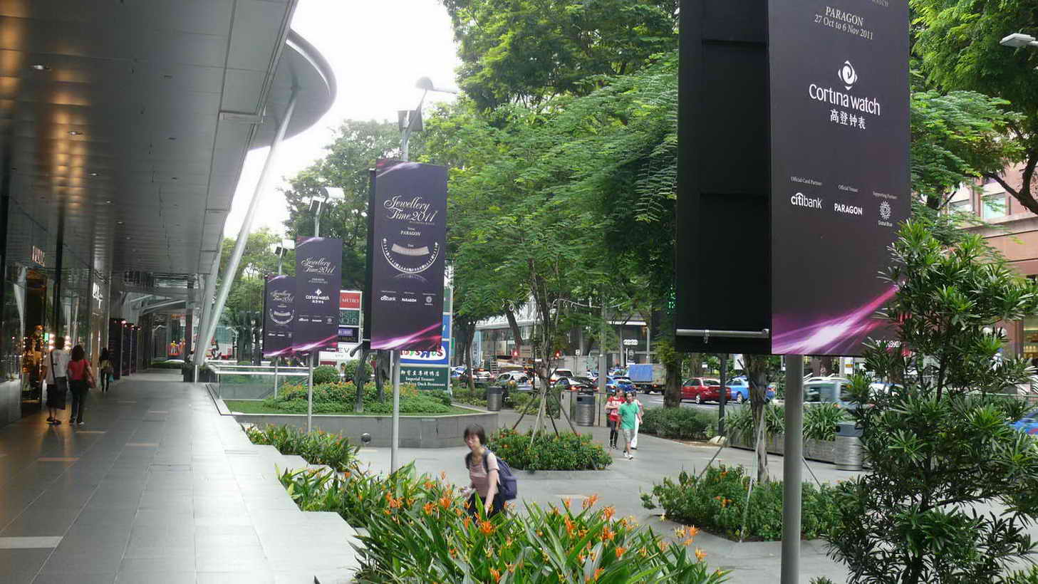 Denn Ausgang zur Orchard Road finden wir erst im 2.Anlauf, hier unten befindet sich ein verwirrendes Labyrinth von Ausgängen und Einkaufspassagen. Zur Orchard Road können wir eigentlich nur sagen, dass sie uns gar nicht gefällt. Die Straße als solche ist nicht sehr schön. Es stehen teils monumentale, auch etwas heruntergekommene Bauten an beiden Seiten und viele der sehr teuren Markenfirmen haben hier ihren Sitz. Nur in einigen Malls gibt es auch preiswertere Läden. Für uns gibt es hier jedenfalls nicht, was uns interessieren könnte. Auch die Elektronik ist nicht mehr die billigste.