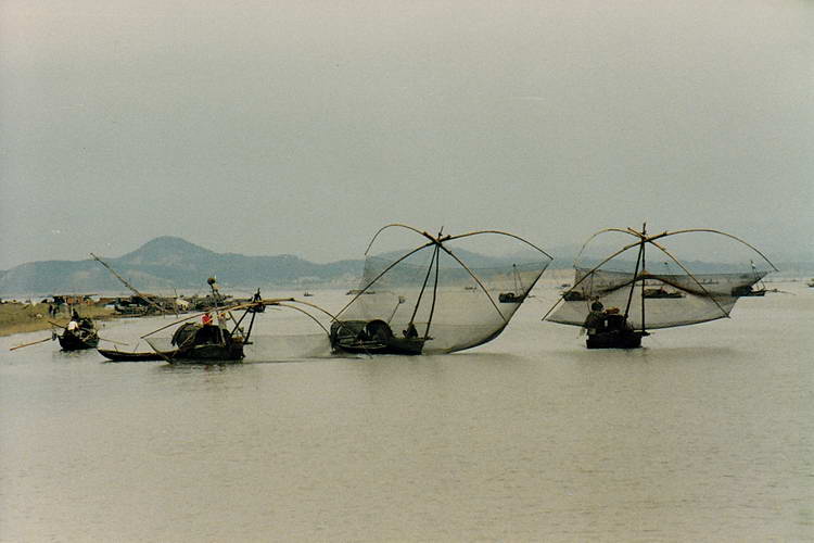In diesem Hotel sehen wir auch viele Chinesen, vielleicht Firmendelegationen? Nach den Mittagessen dusche ich nochmal. Dann fahren wir mit einem Boot über den Dongting-See zu einer kleinen Insel. Hier wird an Ufer Lotos angebaut (man ißt die Wurzeln als Gemüse). Leider ist die Blüte längst vorbei. Der Fischreichtum des Sees ist sehr groß, daher auch der Wohlstand des kleinen Städtchens. Die Fischer haben hohen Ertrag und werden vom Staat mit 60% versteuert. Auf der Insel wird der berühmte Silbernadeltee geerntet. Von dem Tee werden jährlich nur ein paar Kilo geerntet. Wir besichtigen die Insel und besuchen den Tempel der zwei Lieblingskonkubinen, die sich aus Gram, dass der König nicht vom Krieg zurückkehrte, sich hier das Leben nahmen. Im Tempel gibt es ein Gedicht, dass ein Engel in Grasschrift geschrieben hat.