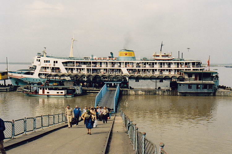 Nach dem Frühstück haben wir alle unsere Koffer zusammengestellt und um 9:30 Uhr sind wir in Yueyang angekommen. Es sind. 28 Grad und Hochsommer. Ich hatte Doris Vorschläge leider in den Wind geschlagen, Wäschewechsel und eine frische Bluse ins Handgepäck zu packen, was ich dann sehr bereut habe. Die Koffer sind gleich zum Bahnhof transportiert worden, weil wir nachts im Zug nach Guilin weiterfahren. Wir sind vom Schiff aus mit dem Bus ins Hotel gefahren, wo wir Tageszimmer beziehen. Wir hatte 1/2 Stunde Zeit, wo ich sofort unter die Dusche ging. Nach den zwei Tagen Katzenwäsche mußte ich erstmal gründlich duschen, leider hatte ich keine frischen Sachen zum Anziehen.