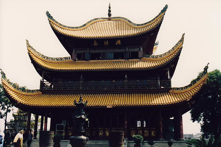 Yueyang ist eine kleine hübsche Stadt, es herrscht ein gewisser Wohlstand. Sie liegt am Ufer des Dongting-Sees, der an einem Ende in den Yangtse fließt. Wir fahren zum Yueyang-Turm, der von berühmten chinesischen Dichtern besungen wurde. Er wurde zum ersten Mal im 3. Jahrhundert errichtet. Hier habe ich die rote Jade-Schildkröte gekauft. Man hat vom Turm aus eine schöne Aussicht auf den See. Es ist eine sehr schöne Anlage. Danach fahren wir ins Hotel zum Mittagessen, dass sehr gut ist. Frau Gräbner feiert ihren 22. Geburtstag. Und unser Edgar lässt eine Flasche nit chinesischem Aperitif die Runde kreisen.