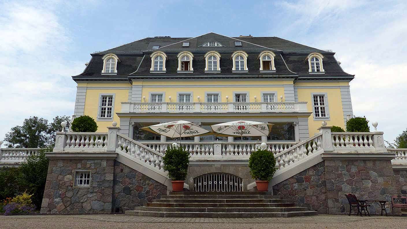 Von Klein Plasten fahren wir in ca. 15 Min. nach Groß Plasten. Hier befindet sich das Schloss Groß Plasten. Erste Teile des Gebäudes stammen von 1751, später wurde es um 1890 erweitert. Heute ist es ein Hotel mit schönem Blick auf den Klein Plastener See. Dieser ist fast komplett von Schilf umgeben. Wir lassen uns auf der Terrasse des Schlosshotels für Kaffee und Kuchen (Marzipantorte mit Himbeeren) nieder und geniessen die angenehmen Temperaturen (26 Grad) und die immer weiter hervortretende Sonne. Der Service ist hier wirklich sehr gut. Sogar Betty, Gitti's Hund, erhält kostenlos einen Wassernapf und dazu noch 2 Scheiben Wurst.