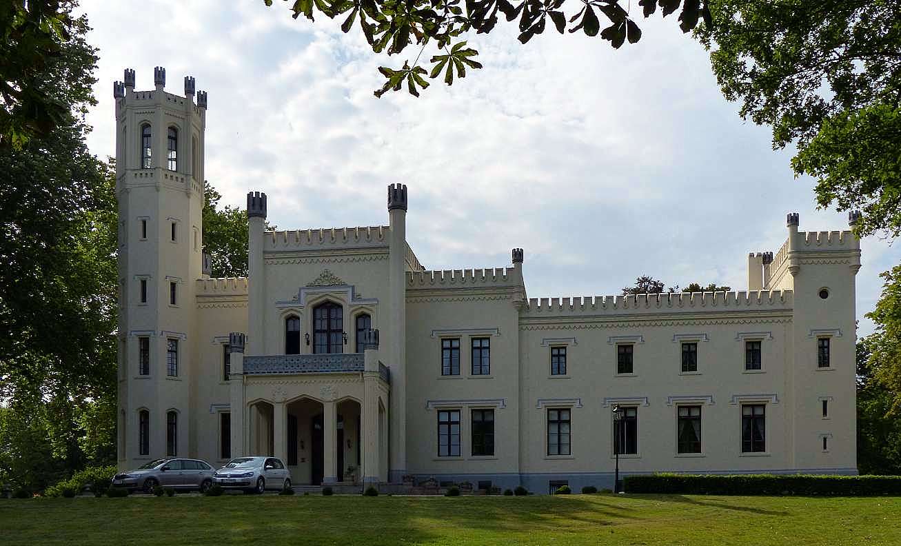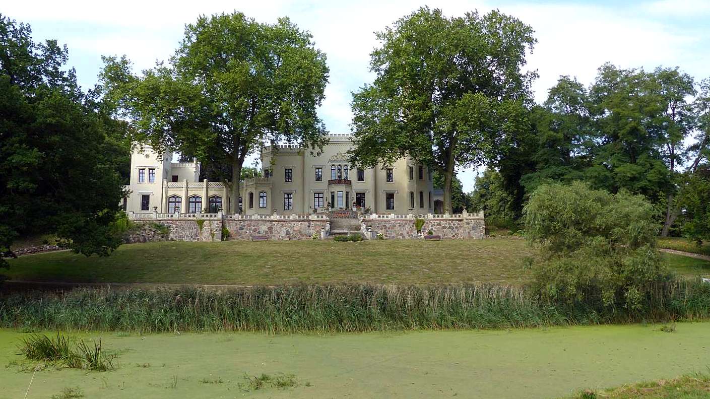 Später machen wir uns auf den Weg zum etwa 20 Min. entfernt gelegenen Herrenhaus Kittendorf. Dieses große Herrenhaus liegt in einem parkähnlichen Gelände mit einem kleinen See vor der großen Südost-Terrasse. Der vermutlich vom Landschaftsarchitekten Peter Joseph Lenné zur Zeit der Errichtung des Herrenhauses entworfene englische Landschaftspark des Schlosses Kittendorf zählte seinerzeit mit seinen 110 Hektar zu den größten Anlagen Mecklenburgs. Heute sind davon nur noch ca. 20 Hektar übriggeblieben. Das Herrenhaus wurde um 1850 erbaut und stellt eine Kopie des wenige Jahre früher fertiggestellten Schlosses Babelsberg im Baustil der Tudorgotik nach englischem Vorbild dar. Nach einem kurzen Spaziergang durch den Park fahren wir weiter zum Schloss Ulrichshusen. Diese Fahrt dauert, auch wegen einiger gesperrter Straßen eine gute Stunde.
