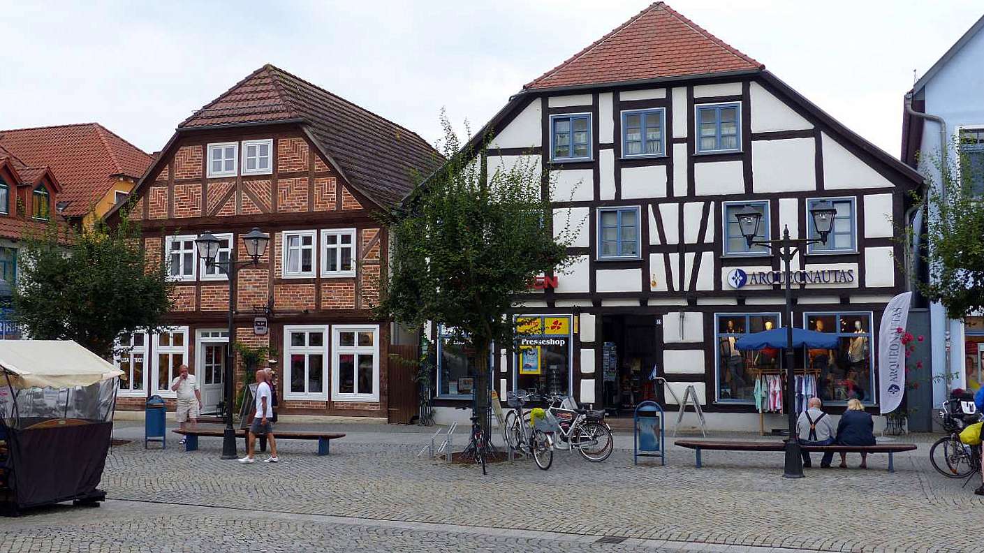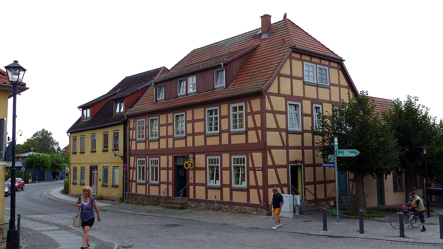 Schon in den ersten Querstraßen rechts und links entdecken wir schöne, alte und gut restaurierte Fachwerkhäuser. An der Müritzstr. 18 steht ein besonders schönes Exemplar von 1804, eines der ersten Häuser, welches vor der ehemaligen Stadtmauer errichtet wurde.
