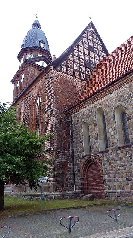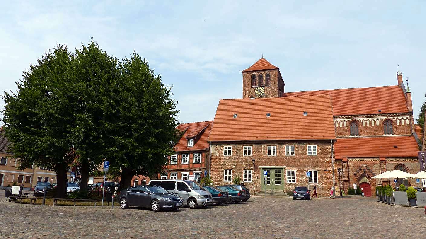 Über die Lange Straße verlassen wir den Neuen Markt und gehen bis zur Kleinen Wasserstraße und biegen rechts ein zur St. Marien Kirche. Der Ursprung dieser Kirche stammt aus dem 14. Jahrhundert. Erhalten geblieben sind davon nur der rechteckige Feldsteinchor und die Sakristei im romanischen Stil. In der Zeit von 1790 - 1792 wurde die Kirche zu großen Teilen neu aufgebaut. Nach einer kurzen Innenbesichtigung (schlichte aber trotzdem schöne Ausstattung) bummeln wir über die Große Burgstraße wieder zum Neuen Markt.