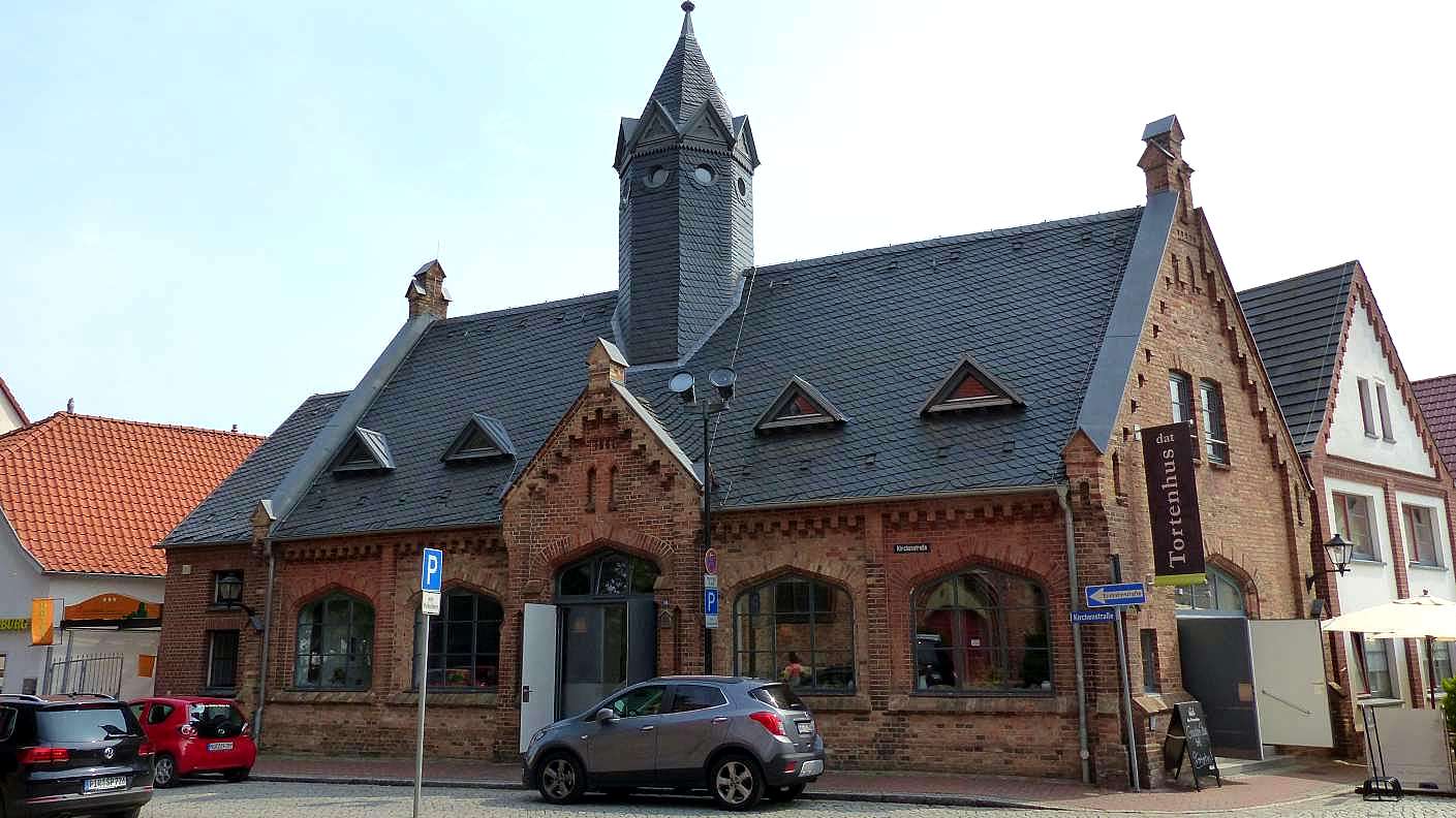 Gegenüber dem Rathaus steht die Alte Feuerwache von 1867. Sehr markant ist der so genannte Steiger- bzw. Schlauchturm. Heute befindet sich "Dat Tortenhus" mit mindestens ebensogroßen Tortenstücken wie das "Hafencafé im Speicher" in Neustrelitz. Über die Kirchstraße spazieren wir wieder zurück zum Neuen Markt. Auch hier in den kleinen Gassen und Seitenstraßen stehen viele sehenswerte Fachwerkhäuser und andere alte Gebäude, u.a. mit sehr schönen Erkern. Nach rund 3 Stunden 30 Minuten sind wir wieder zurück am Auto. Da die Sonne inzwischen ein bisschen mehr durch die Wolken blinzelt beschließen wir uns noch einige Schlösser und Herrenhäuser (Gutshäuser) nördlich von Waren anzusehen.