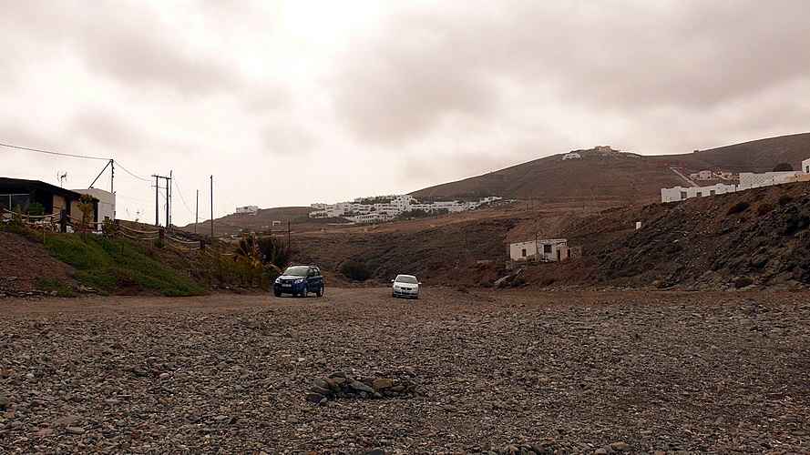 Auf der Anfahrt windet sich die Straße durch einige Barrancos und man hat schöne Aussichten in die Landschaft. Unterwegs fallen uns auch die viele Ziegen in der sehr trockenen Landschaft auf.