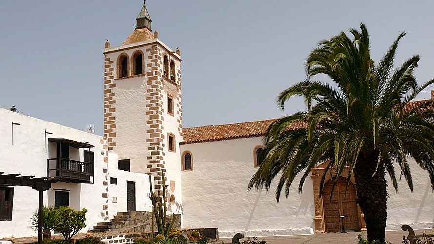 Wir aber wollen weiter nach Betancuria, der alten Inselhauptstadt Fuerteventuras. Hier soll es noch einige ansehnliche Bauten und eine schöne Kirche mit schön bepflanztem Vorplatz geben. Parkplätze sind im Ort knapp und gegen Mittag soll es immer ziemlich voll sein. Gut dass es noch Vorsaison ist, so finden wir einen Parkplatz und voll ist es auch nicht. Unser Weg führt uns direkt ins Zentrum des 500-Seelen-Dorfs. Die historischen Bauten sehen sehr schön aus, aber die Kirche macht von außen nicht viel her.