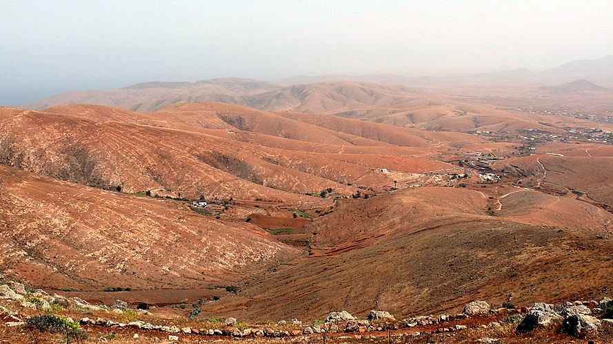 Gegen 9 Uhr 30 machen wir uns auf die Socken und fahren über die Küstenstraße FV-2 Richtung Puerto del Rosario und dann über die FV-3 und FV-20, FV-30 in etwa 50 Minuten nach LLanos de la Concepcion. Der Ort selber ist nicht sehr sehenswert und auch für die beiden Windmühlen im Ort gibt es bessere Exemplare auf der Insel. Kurz nach dem Ort befindet sich Richtung Valle de Santa Ines linkerhand einer schöner Aussichtspunkt mit Parkplatz. Weiter geht es nach Aguas Verdes an die raue Westküste.