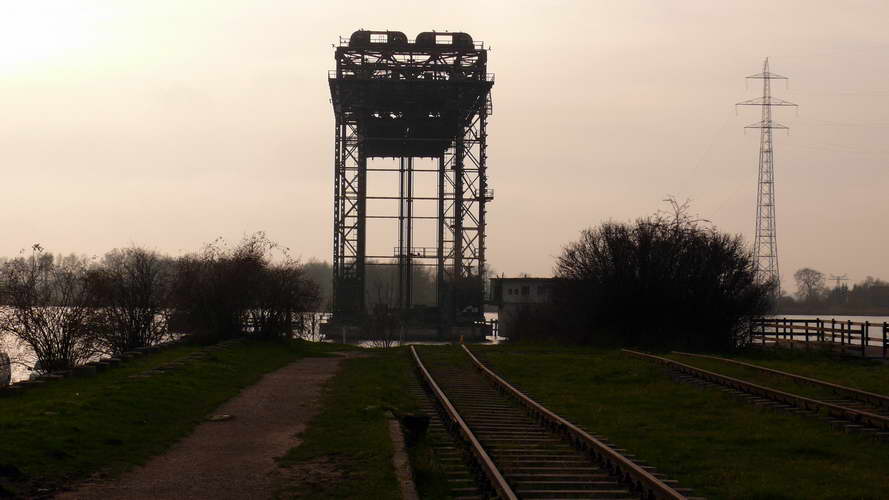 Von Welzin aus fahren wir anschließend zurück zur B110 und vorbei an Use- dom nach Karnin. Hier befinden sich die Reste einer Eisenbahnhubbrücke, die von den Nazis 1945 auf deren Rückzug zuerst nach oben gefahren wurde. Anschließend sprengten sie noch die Zufahrten. Der russischen Armee sollte der Weg über das Wasser erschwert werden. Die eigentlich Hubbrücke ist noch erhalten und ein ganz schön monströses Bauwerk. Am frühen Vormittag oder späteren Nachmittag (im Dezember) kann man es am besten fotografieren. Gegen Mittag ergeben sich durch die hinter dem Bauwerk stehende Sonne allerdings auch sehr interessante Bilder. Die Hubbrücke ist 33 m hoch und 48 m lang. Sie wurde 1933 erbaut.
