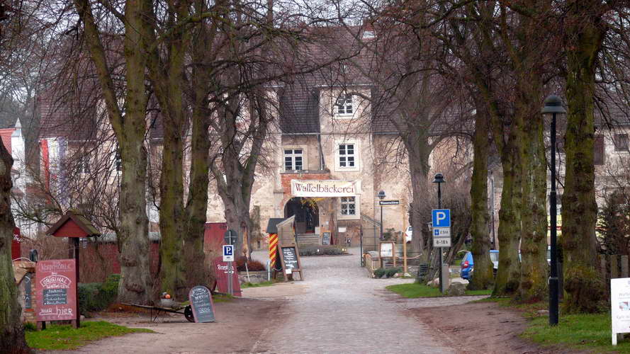 Wir verlassen Usedom nach einem kurzen Rundgang wieder Richtung Mellen- thin. Vor 3 Jahren entdeckten wir hier das Wasserschloss Mellenthin, welches damals gerade restauriert wurde. Schon zu dieser Zeit fanden wir das Schloss sehenswert und wollten wissen was daraus geworden ist. Inzwischen befindet sich im Westflügel ein feines Hotel, im Südflügel existiert ein Restaurant und im Ostflügel soll noch eine Privatbrauerei einziehen. Es hat sich hier einiges getan. In den etwas mittelalterlich angehauchten Gasträumen suchen wir uns ein nettes Plätzchen und genießen hier Kaffee (könnte etwas kräftiger sein) und Kuchen, der sehr lecker schmeckt. Das Restaurant ist täglich von 12 -22 Uhr geöffnet.