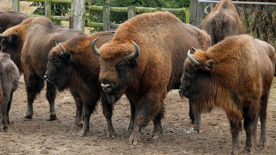 Zurück im Auto beschließen wir als nächstes das Wisentgehege bei Prätenow anzusteuern. Vor 3 Jahren war dieses Gehege im Dezember geschlossen, jetzt soll es angeblich geöffnet sein. Nach kurzer Fahrt erreichen wir das Gehege und tatsächlich ist die Eingangstür offen. Für 2 Euro Eintritt pro Person dürfen wir uns die Wisente ansehen, die tagsüber in einem Schaugehege stehen. Hier können die Besucher die 10 Tiere relativ nahe sehen und die teilweise mächtigen Bullen und natürlich auch die restliche Herde bewundern. Eine ebenerdige und eine erhöhte Plattform bieten beste Ausblicke. Geöffnet ist das Gehege (2009) täglich von 10:30 - 16:00 außer Montags. In den Ferien und an Feiertagen ist auch montags offen. Die Fütterungen finden jeweils um 10:30 und 14:30 statt. Ein wirklich lohnenswerter Ausflug.