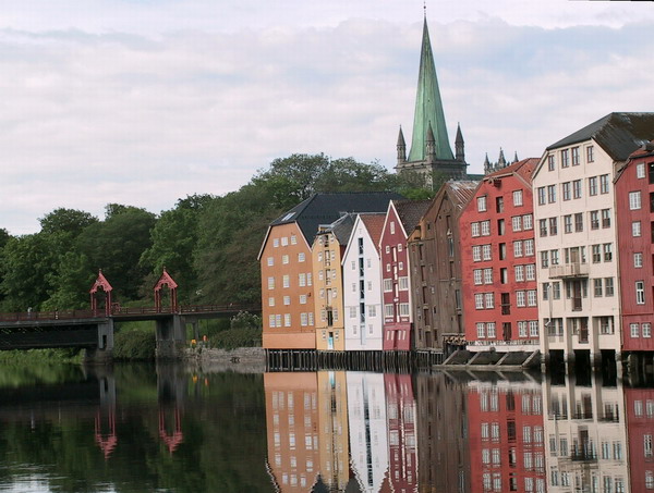 In der Stadt führte uns der erste Weg zu den Speicherhäusern von Bryggene (sind in jedem Reiseführer zu finden). Bei strahlendem Sonnenschein konnten wir von der Strasse „Nedre Bakklander“ aus wunderschöne Fotos der teilweise recht alten Speicherhäuser mit ihren Spiegelbildern im Wasser und dem Dom schießen. Auch die Seitenstraßen hinter den Speicherhäusern sind sehenswert. Niedliche kleine Häuser mit vielen blühenden Blumen und einige Straßencafés findet man hier.
