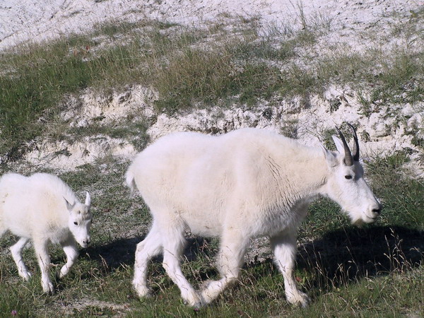 So hofften wir kurz vor 6 Uhr in Jasper zu sein. Aber insgesamt 8 Schneeziegen (Mountain Goat) ver- eitelten unseren Plan.