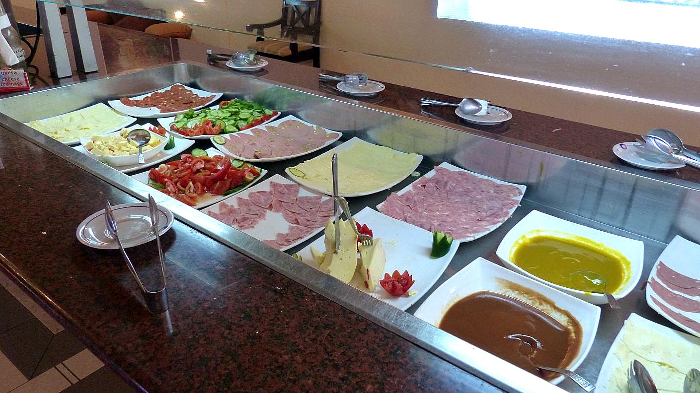Heute dürfen wir richtig ausschlafen. Erst gegen 7 Uhr klingelt der Wecker, wir sind aber schon um 6 Uhr 45 wach und stehen auf. Die Nacht war sehr ruhig, aber die Betten recht hart. Daran müssen wir uns erst mal wieder gewönnen. Bei der Morgentoilette können wir uns heute Zeit lassen und genießen das permanent verfügbare warme Wasser ausgiebig. Später gehen wir zum Frühstück. Das Buffet ist sehr groß, es gibt diverse Brötchensorten, Belag, Salate, ein warmes Buffet mit verschieden Wurst- und Fleischstückchen, Säfte, Müsli, Eierspeisen auf Wunsch, hart und weich gekochte Eier und viel Obst. Insgesamt etwas umfangreicher als in Viñales. Der Kaffee allerdings schmeckt hier nicht besonders, der Rest des Frühstücks ist in Ordnung.