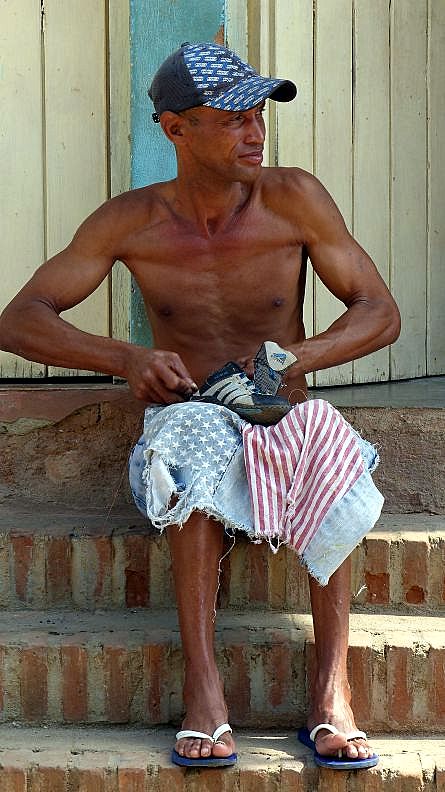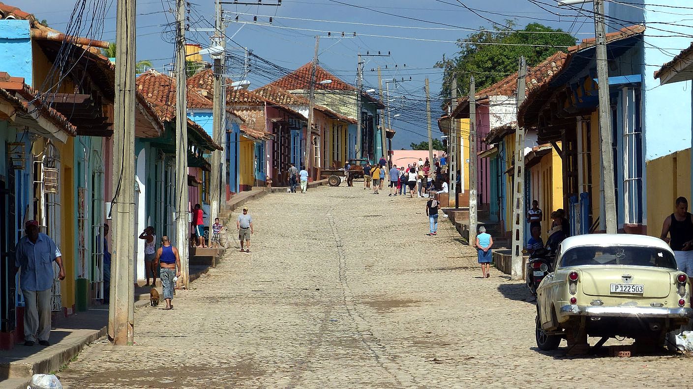Viele der Häuser sind bunt angestrichen, kleine Kinder sitzen in den Fenstern und beobachten die Straße. Wasserwagen fahren durch die Strassen, Pferdekutschen poltern über das Pflaster und nicht fahrbare Oldtimer sind aufgebockt am Straßenrand abgestellt und warten auf ihre Reparatur. In einem der Häuser entdecken wir einen Saxophonspieler und an vielen Hauswänden hängen kleine Käfige mit Singvögeln. Leute sitzen vor ihren Häusern und reparieren ihre Schuhe, alles macht einen so friedlichen Eindruck. Ab und zu müssen wir einem Reiter ausweichen, der bei dem Pflaster aber schon frühzeitig zu hören ist. Gelegentlich können wir einen Blick in die "gute Stube" einer kubanischen Familie werfen, denn Gardinen sind hier so gut wie unbekannt.