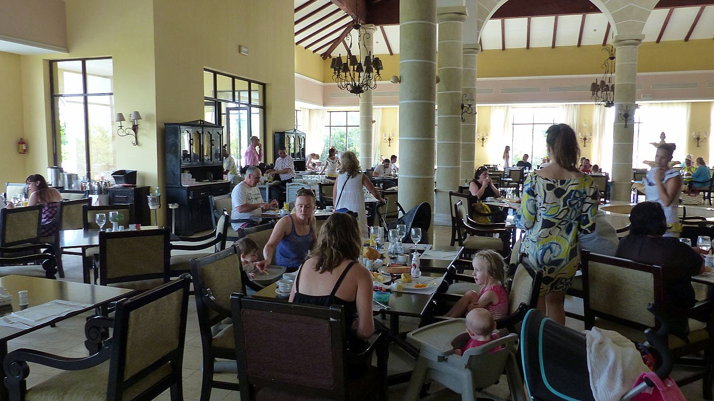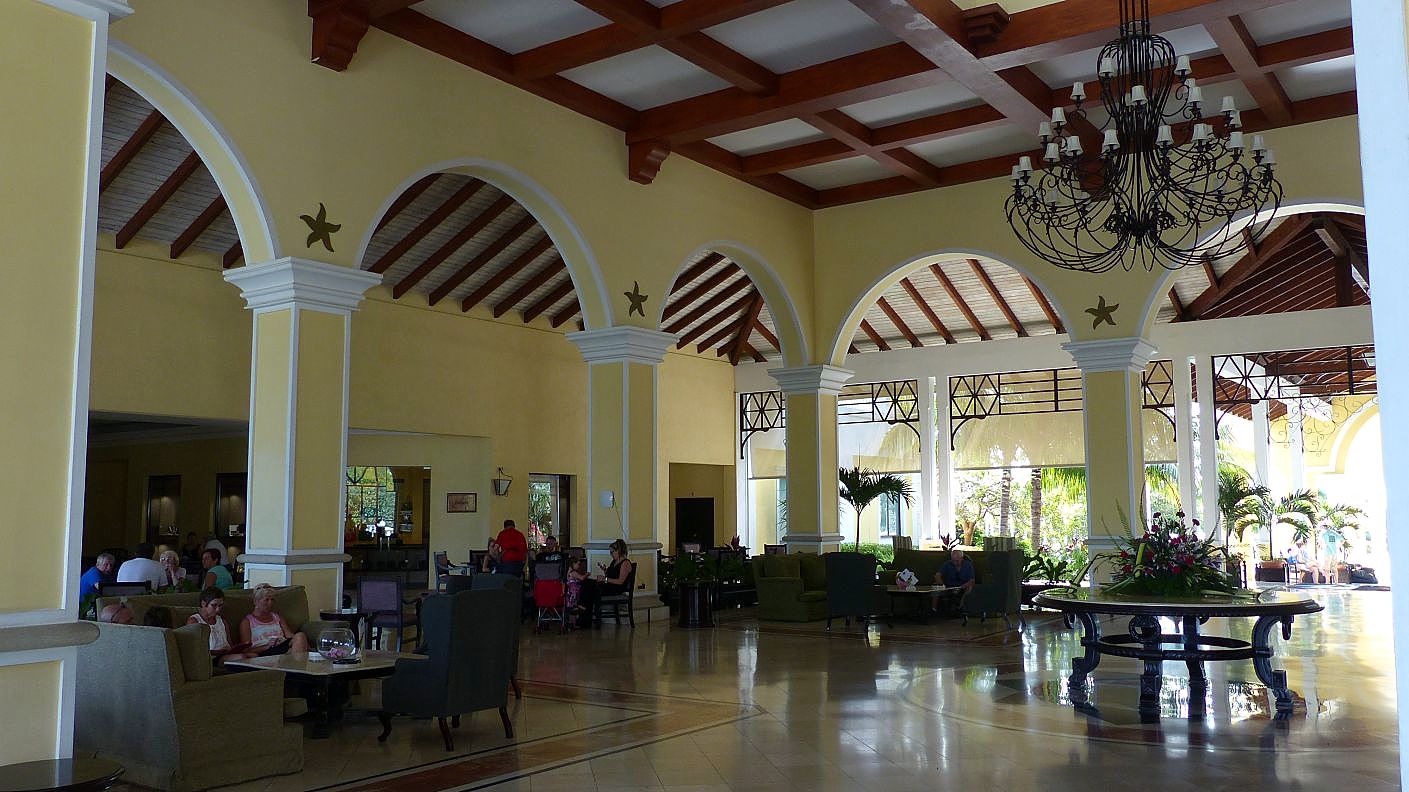 Heute sind wir erst gegen 7 Uhr aufgestanden. 2 große breite Betten mit guter Federung haben uns gut schlafen lassen. Wir nehmen uns Zeit bei den üblichen Vorbereitungen für den Tag. Draußen scheint schon die Sonne. Später gehen wir zum Frühstück wieder in die "große Bahnhofshalle" und werden freundlich nach unseren Tischwünschen gefragt und an einen entsprechenden Tisch geleitet. Das Frühstücksbuffet ist auch hier im Iberostar Hotel Ensenachos recht umfangreich, auch wenn es sich nicht mit dem im Melia Santiagode de Cuba messen kann. Es nicht ganz so umfangreich und wirkt teilweise etwas lieblos zusammengestellt. Aber wir finden auch für unseren Geschmack einiges zu essen und werden gut satt. Es ist heute früh nicht ganz so laut wie gestern Abend. Aber trotzdem fühlen wir uns hier (im Restaurant) nicht ganz so wohl wie in den Hotels zuvor.