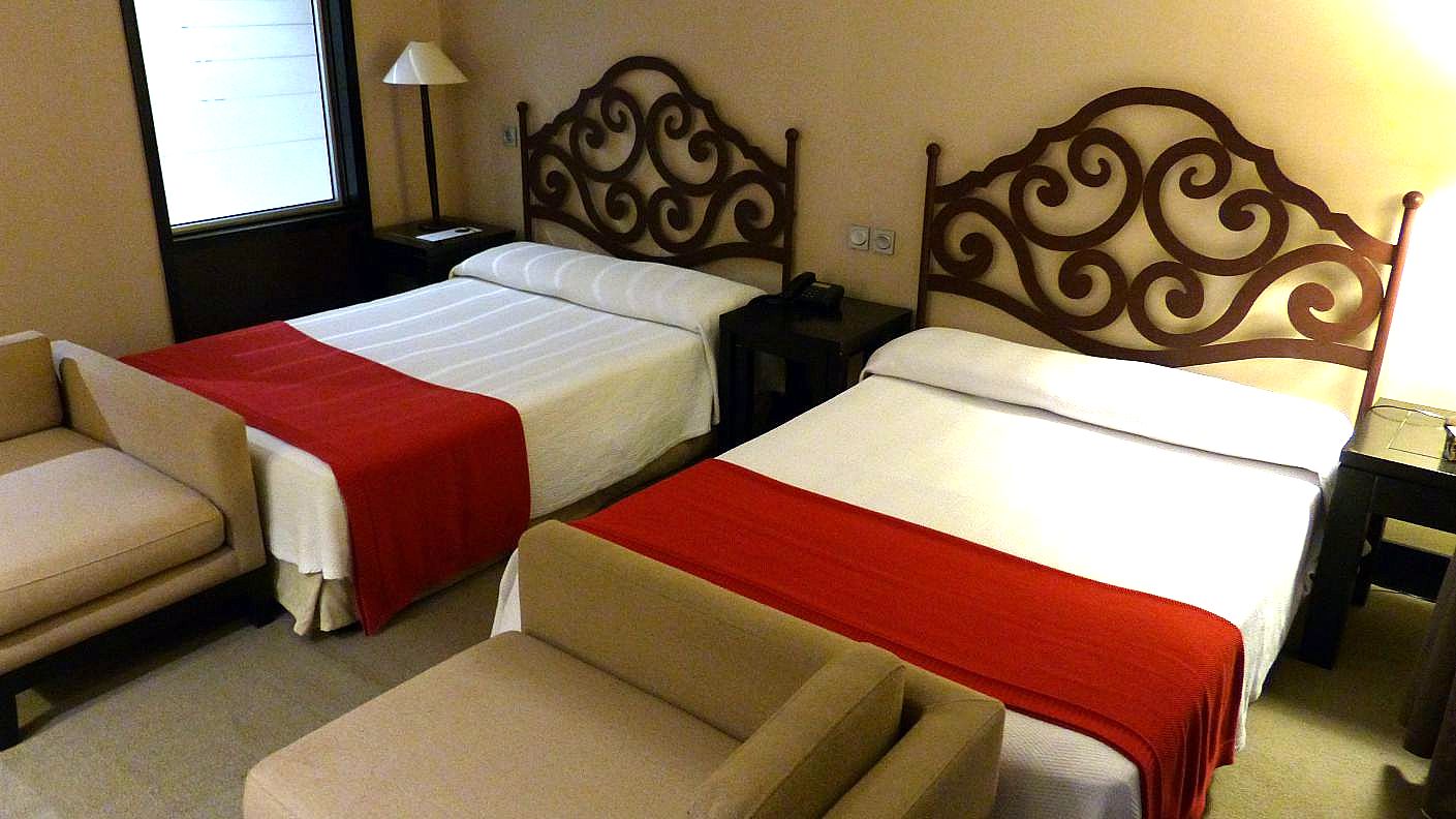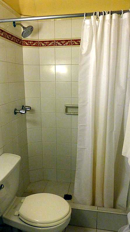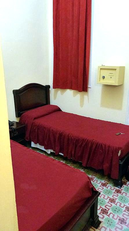 Das Hotel Colon ist ein 2-Sterne-Hotel, was man sofort bei der Zimmergröße merkt. Die Zimmer sind in der Regel nur etwa 10 m² groß, sie besitzen 2 Einzel- oder ein Doppelbett, einen kleinen Tisch mit Spiegel, einen Kühlschrank, eine Klimaanlage (abschaltbar), das Bad ist erstaunlicherweise recht groß, Dusche, WC, Handtücher, alles ist vorhanden und sauber und in Ordnung, für eine Nacht ist dieses Zimmer in Ordnung, viel auspacken muss und kann man auch nicht, kein richtiges Fenster vorhanden, Safe gegen Gebühr