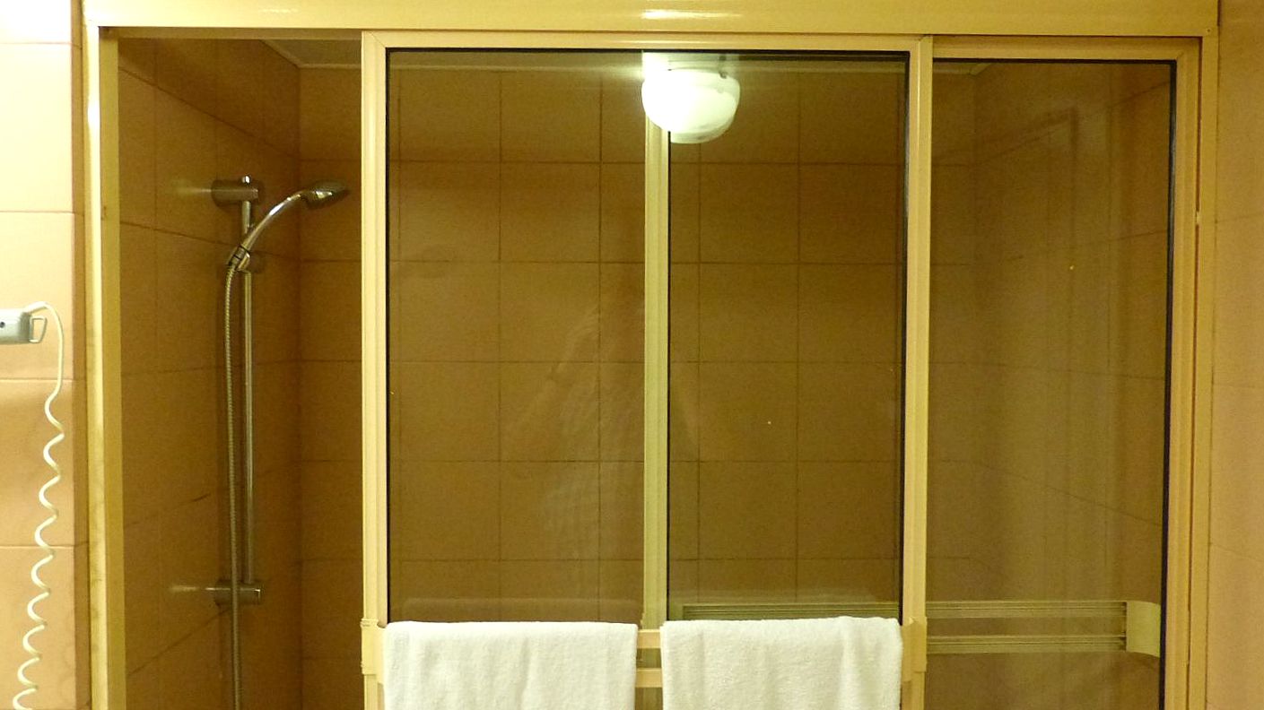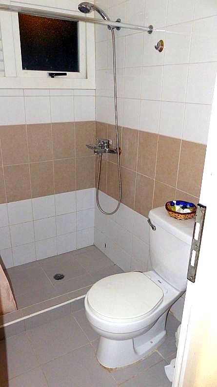 Das Bad ist gut ausgestattet, es gibt auch Shampoo, Dusch bzw Badegel, 2 Waschbecken, eine Dusche mit Regenduschkopf und eine Badewanne mit extra Dusche, ein Vergrößerungsspiegel. Die Toilette ist in einem separaten Raum mit Tür im Badezimmer untergebracht, Handtücher und Toilettenpapier sind in ausreichender Menge vorhanden, Der einzige Nachteil des Zimmers ist ein Milchglasfenster in der Wand zwischen Bad und den Betten. Geht jemand nachts ins Bad und macht das Licht an, dann fällt auch Licht (gedämpft) auf die Betten.