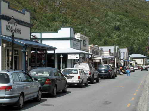 Es ging dann wieder steil abwärts und wir erreichten den SH 6. Da wir noch recht früh dran waren und die Sonne schien, machten wir noch einen kleinen Umweg über Arrowtown. Der Kern dieses kleinen Ortes war wieder aufpoliert mit vielen Läden bestückt worden. Es sieht richtig niedlich aus und viele Touristen aus Queenstown kommen hierher.