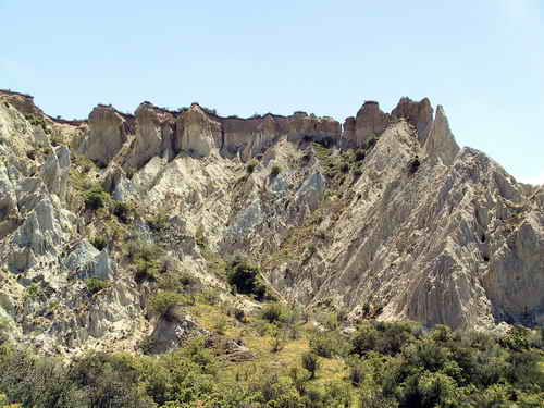 Diese Cliffs sind durch eine tektonische Aufspaltung entstand bei der ein Teil bis zu 100 m hoch angehoben wurde. Hierbei kamen Kalk- und Lehmforma- tionen zum Vorschein, die anschließend unterschiedlich verwitterten. Das Ganze sieht wie eine Miniaturausgabe von Kapadokien in der Türkei aus. Wer also noch nicht dort war, sollte diesen Abstecher machen. Der Weg führt entlang des Cliff und man sollte ihn auf jeden Fall bis zum Ende gehen. Erst hier sieht man dass sich kleine Schluchten und Canyons gebildet haben. Eine sehr interessante Formation.