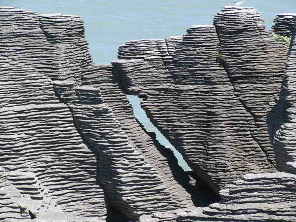 Da wir heute weit nach Norden fahren wollten, legten wir unseren nächsten Stopp erst bei den Pancake im Punakaiki National Park ein. Vor sieben Jahren waren wir hier das letzte Mal, welch eine Veränderung. Damals stand hier nur ein kleines Cafe mit wenigen Plätzen. Geparkt wurde rechts und links der Straße und der Weg zu den Pancakes war eher ein breiterer Trampelpfad. Heute herrscht hier Jubel, Trubel, Heiterkeit. Mehrere Parkplätze, Cafes, ein Info-Center und Geschäfte waren entstanden. Ein richtiger Zugang zu den Pancakes war gestaltet worden und der Weg bis zu den ersten Aussichtspunkten war auch für Rollstuhlfahrer geeignet. Und jede Menge Touristen wuselten durch die Gegend.